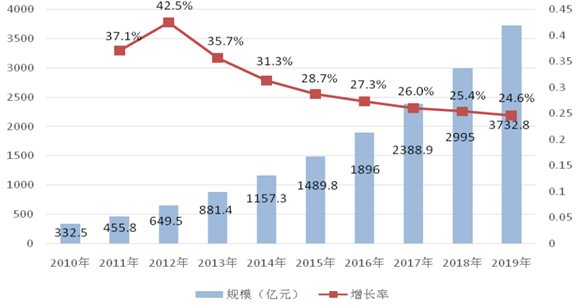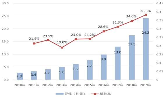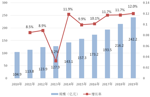 2010-2019 年中國工業傳感器市場規模與增長預測