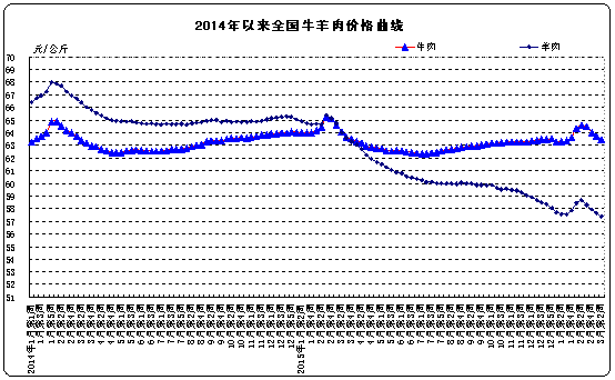 牛羊價格。全國牛肉平均價格63.45元/公斤,比前一周下降0.4%,同比下降1.0%。河北、遼寧、吉林、山東和河南等主產省份牛肉平均價格56.18元/公斤,比前一周下降0.3%;上海、浙江、福建、廣東和江蘇等省份平均價格75.11元/公斤,比前一周下降0.5%。全國羊肉平均價格57.39元/公斤,比前一周下降0.5%,同比下降10.4%。河北、內蒙古、山東、河南和新疆等主產省份羊肉平均價格51.20元/公斤,比前一周下降0.1%;上海、浙江、福建、江西和廣東等省份平均價格68.28元/公斤,比前一周下降1.1%。
