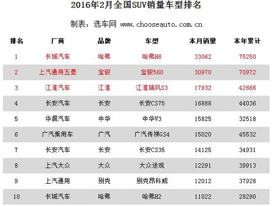 2016年2月SUV市場分析:銷量呈波動性下降
