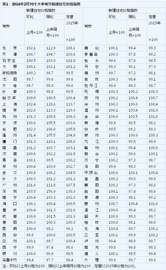 2016年2月70城房價環(huán)比上漲城市達(dá)47個 最高漲幅3.6%