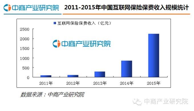 近幾年,互聯網保險保費收入規模高速增長,中商產業研究院數據顯示:2015年,中國互聯網保險保費收入為2233.96億元,同比增長160.1%。