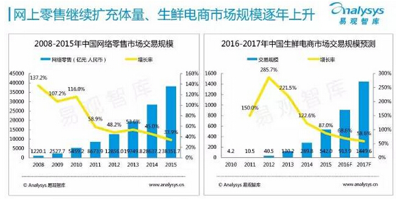 近日,易觀智庫發布《中國生鮮電商市場年度盤點報告2016》,報告對中國中國生鮮電商市場的發展現狀及未來趨勢進行了分析,下面我們來了解一下中國生鮮電商市場發展的現狀。
