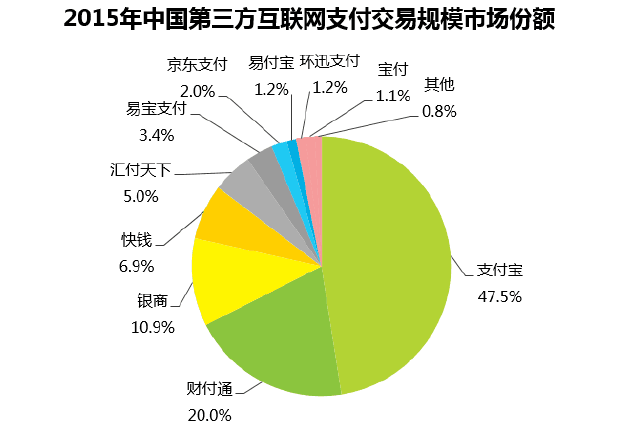 2015年中國第三方互聯網支付市場份額排名:支付寶第一