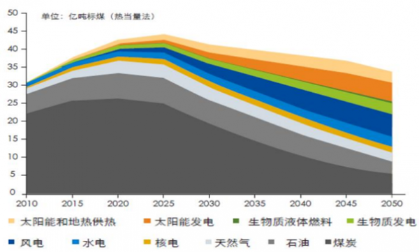 中國能源消費結構預測(2015-2050年)