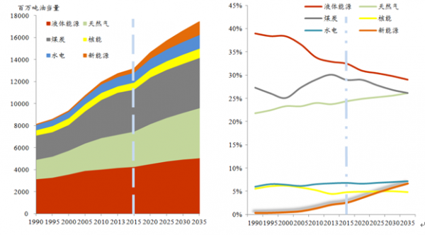 BP對能源消費結構的預測(2016-2035年)