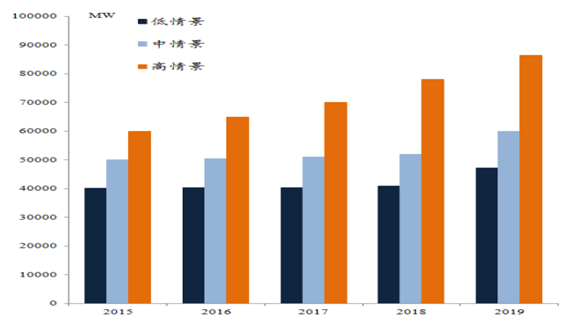 全球光伏年新增量情景分析(2016-2019年)