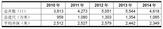 中石油集團2010-2014年鉆井工作量統計