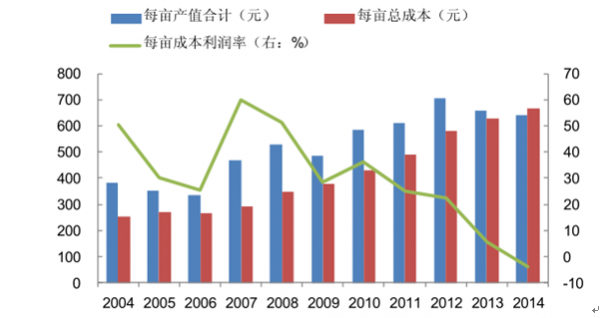 大豆種植相對人力要求較少,人力成本在總成本中占比不到三成。因此,盡管人力成本近幾年來大幅增長,但對于大豆的總成本提升并不如棉花那么明顯。雖然大豆價格下跌的確令每畝種植收益下滑,14 年開始大豆種植也開始出現虧損,但每畝虧損僅 25 元左右,尚不至于觸發行業進入快速去產能階段。