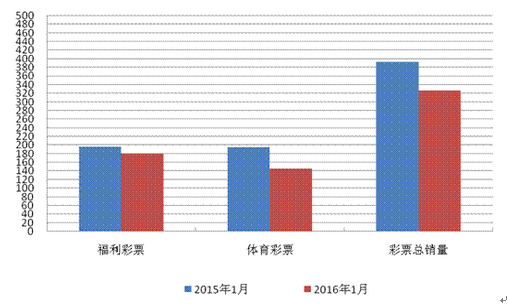 2016年1月彩票銷售量與上年同期比較圖