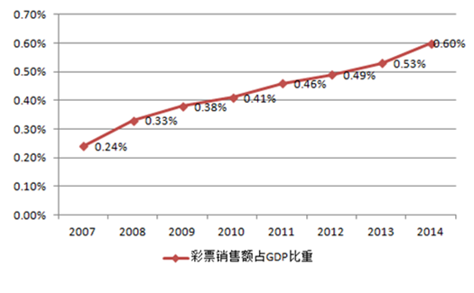 2007-2014年中國彩票銷售額占GDP比重