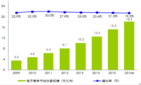 2009-2016年中國電子商務(wù)市場交易規(guī)模
