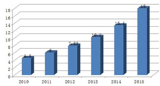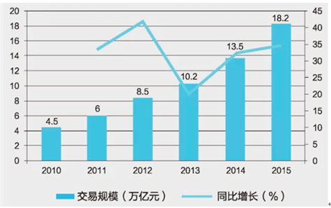 2010-2015年我國電子商務(wù)交易市場規(guī)模統(tǒng)計(jì)