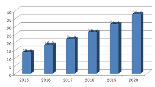 根據(jù)當(dāng)前我國宏觀經(jīng)濟(jì)的發(fā)展趨勢,網(wǎng)購人數(shù)的迅速擴(kuò)大,信息產(chǎn)業(yè)的快速發(fā)展,結(jié)合我國電子商務(wù)交易額的歷史發(fā)展規(guī)律,預(yù)計(jì)未來五年我國電子商務(wù)的交易額增速在20%左右,到2020年我國電子商務(wù)交易額將達(dá)到37.7萬億元。