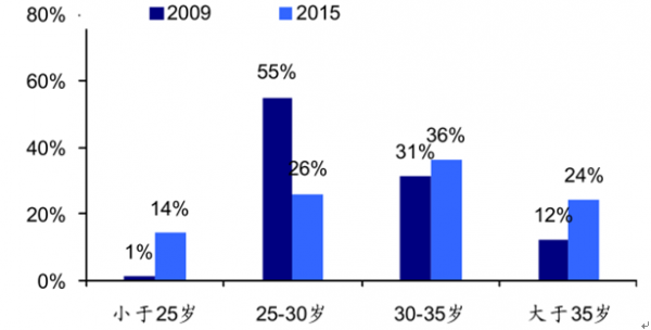 根據(jù) 2015 年最新調(diào)查顯示,中青年是我國(guó)醫(yī)美消費(fèi)群體的主力。同時(shí)我們也注意到,近年來(lái)美容群體呈現(xiàn)年輕化趨勢(shì),25 歲以下消費(fèi)者數(shù)量增長(zhǎng)迅速。而隨著個(gè)人美容習(xí)慣的養(yǎng)成和收入的增加,未來(lái)10-20 年內(nèi)中老年美容將成為“新常態(tài)”,面部除皺,美容注射等“保養(yǎng)性”美容項(xiàng)目市場(chǎng)需求將有望擴(kuò)大。隨著中國(guó)中產(chǎn)階級(jí)數(shù)量的不斷擴(kuò)大,其消費(fèi)結(jié)構(gòu)將從基本的衣食住行偏向自我提高。近年來(lái)醫(yī)美消費(fèi)群體中中等收入階層占據(jù)了約 70%,其消費(fèi)能力有望進(jìn)一步打開。