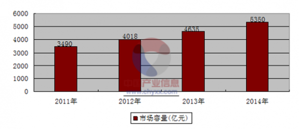 2011-2014年我國(guó)醫(yī)療美容行業(yè)市場(chǎng)容量(單位:億元)