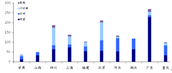 目前我國(guó)的整形醫(yī)院約有 10000 家,受經(jīng)濟(jì)發(fā)展速度和對(duì)外開放程度所限,目前醫(yī)美產(chǎn)業(yè)地域分布相對(duì)集中。根據(jù) 2011 年 CAPA 對(duì)中國(guó)十省市醫(yī)美市場(chǎng)的調(diào)研數(shù)據(jù),北京,上海,廣州三地醫(yī)美機(jī)構(gòu)數(shù)量占了調(diào)查總數(shù)的 46%。而對(duì)比 2014 年和 11 年數(shù)據(jù),不難發(fā)現(xiàn)中國(guó)東部沿海地區(qū)整體增速大于內(nèi)陸,但中部地區(qū)如湖北,四川等地也發(fā)展較快,具備擴(kuò)張潛能。