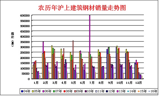 核心提示: 1、滬上建筑鋼材銷量走勢分析3月份隨著氣溫回升,工地陸續(xù)開工,終端需求加快釋放。農(nóng)歷1月(2016.2.8-2016.3.8)銷量環(huán)比增長4.2%,同比下降11、滬上建筑鋼材銷量走勢分析