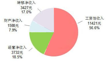 2、居民收入增加,醫療衛生消費能力不斷提升2014年按收入來源分的全國居民人均可支配收入及占比