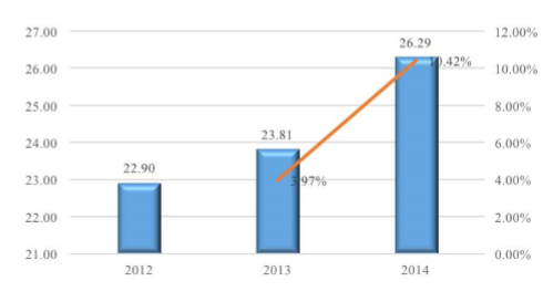 中國擁有世界上多的人口,總人口數在 2014 年達到 13.68 億人。中國正 處在人口老齡化加速階段,60 周歲及以上人口從 2008 年的 1.86 億增長到 2014 年的 2.13 億,占總人口的比例從 14.01%上升到 15.57%。