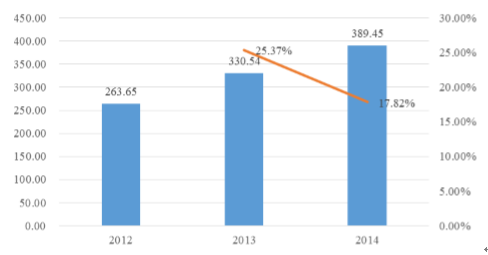 根據中研普華對中國醫用敷料市場的調查分析數據,2014 年中國醫用敷料市場規模為 389.45 億元,同比增長 17.82%。