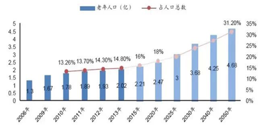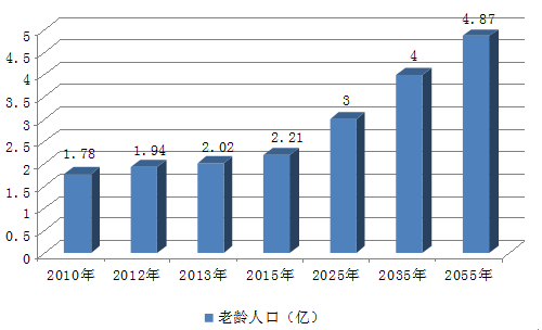 預計中國老齡人口到了2010年將增加到1.12億,2020年將達到2.48億,2051—2100年將穩定在3—4億。