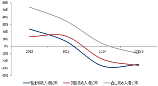 2012 年嬰幼兒奶粉的海淘規(guī)模僅 49億人民幣,而在海外代購、跨境電商等渠道迅猛發(fā)展下,2014 年海淘規(guī)模已經(jīng)超過 100 億元人民幣。海外奶粉的高品質(zhì)與低價格促使其在華市占率迅速提升,這在一定程度上侵蝕了國內(nèi)奶粉企業(yè)的利潤空間, 部分國內(nèi)奶粉企業(yè)自 2013 年起收入及利潤出現(xiàn)大幅下滑。