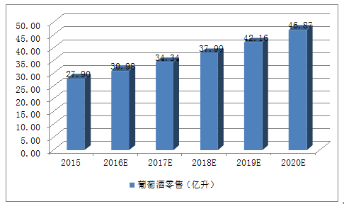 2015-2020年中國葡萄酒零售量預測