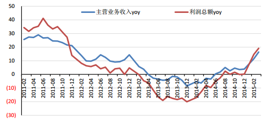 2015Q1 全國葡萄酒進口量同比增長 23.5%,重新恢復正增長;全國葡萄酒產量同比上漲16.91%,延續了 2014 年 8 月以來的增長態勢。2015Q1 全國葡萄酒制造企業的主營業務收入同比增長16.4%,自2014年6月以來實現正增長,葡萄酒制造企業的利潤總額同比增長 19.1%,自 2014 年 8 月以來基本實現正增長。