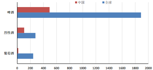 各酒種消費量(單位:億升)