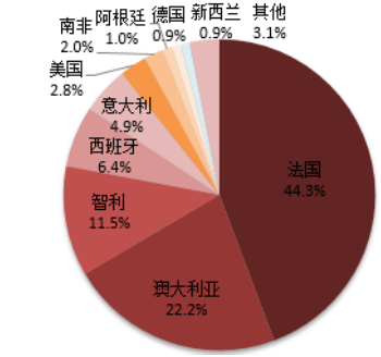 2015年進口葡萄酒來源國中,法國、智利、西班牙、澳大利亞和意大利依然位居前五位,進口量增速均在 50%以上,進口量累計占比 90.2%,較 2014 年上升了 2.7 個百分點;進口額累計占比 89.3%,較 2014 年增長了 3.7 個百分點。從前五大進口國情況來看,智利和澳大利亞進口增速最快,同比增長 69.5%、67.8%,澳大利亞、南非和智利進口金額增速最快,同比增長 77.1%、71.4%和 40.1%。我們認為進口關稅的逐步減免是驅動澳大利亞和智利進口酒大增的政策性因素, 而高性價比優勢則是智利進口酒猛增的產品因素。 總體來看,2015 年舊世界葡萄酒進口呈現高速增長態勢,而新世界葡萄酒進口增長主要依靠澳洲貢獻。