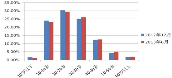 2013年第二季度保險網民與全網性別與年齡分布對比