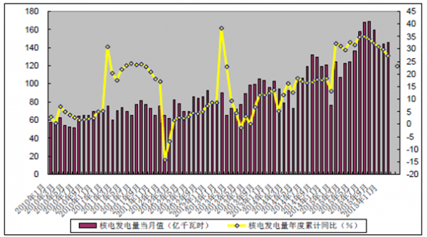 1-2月份,全國核電發電量285億千瓦時,同比增長23.1%。