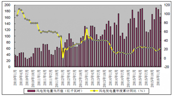 1-2月份,全國6000千瓦及以上風電廠發電量348億千瓦時,同比增長21.9%。