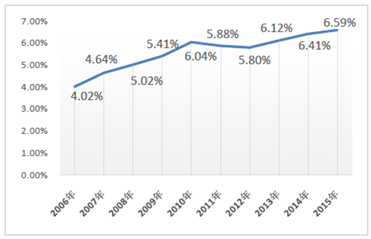 據(jù)國家統(tǒng)計局統(tǒng)計數(shù)據(jù),2006年-2014年,醫(yī)藥工業(yè)總產(chǎn)值由5345.7億元增長到24553.2億元,年復合增長率(CAGR)達21.0%;其中,中藥飲片子行業(yè)銷售收入由190.2億元增加到1495.6億元,CAGR為29.7%,中藥飲片年復合增速顯著高于醫(yī)藥工業(yè)全行業(yè)整體。從醫(yī)藥工業(yè)細分子行業(yè)橫向比較來看,化學原料藥、化學制劑、中成藥、生物藥品、四類子行業(yè),2006-2014年年復合增長率分別為16.4%、20.9%、22.6%和27.6%,中藥飲片CAGR高達29.7%,排醫(yī)藥工業(yè)藥物細分子行業(yè)的“Top1”。從中藥飲片銷售收入占醫(yī)藥工業(yè)總產(chǎn)值比重來看,近年來均保持逐年上升趨勢。2006年中藥飲片在醫(yī)藥工業(yè)全行業(yè)中的銷售收入比重為4.02%,2014年上升到6.41%,最新公布的2015年10月達到6.59%。中藥飲片行業(yè)在我國醫(yī)藥工業(yè)中的市場和行業(yè)地位得到逐步加強。
