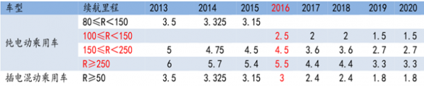 2013-2020新能源乘用車國家補貼標準(萬元)