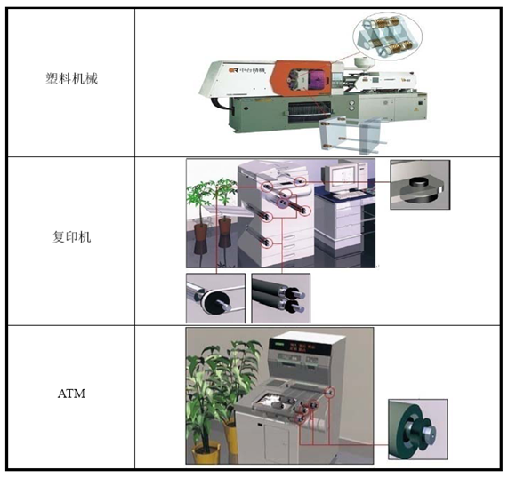 應用行業(yè)典型應用范圍汽車制造轉(zhuǎn)向系統(tǒng):變速機、差速器、離合器、平衡橋、吊耳等;發(fā)動機:連桿襯套、節(jié)氣門體、張緊輪、渦輪增壓器、噴油泵、惰輪、機油泵、搖臂襯套、啟動電機等;轉(zhuǎn)向系:懸掛減震器、轉(zhuǎn)向機、轉(zhuǎn)向阻力泵、轉(zhuǎn)向減震器等;制動系統(tǒng):踏板總成、制動蹄等;車身:門鉸鏈、行李箱鉸鏈、雨刮器等工程機械曲臂軸套、引導輪軸套、拖帶輪、油缸、操作機構(gòu)、齒輪油泵、從動輪、被動輪、旋轉(zhuǎn)臺、抓斗關節(jié)、工業(yè)機器人手臂等部位;舉升機械、搬運機械、堆高機等關節(jié)部位;液壓油缸、起重機操作桿、傳輸部位等。塑料機械等部位模具制造模具的導向、斜契、定位、導軌等部位,輪胎模具等液壓設備齒輪泵、柱塞泵、葉片泵、計量泵、消防泵、壓縮機、潛水泵等;油缸、氣缸、球閥、蝶閥、閥門控制機構(gòu)等輕工業(yè)食品機械、醫(yī)藥機械、塑料機械等需要傳動的部件建筑工程房屋、工廠等建筑物的減震、防震設施、橋梁的防脹設施、斜拉索等建筑工程設施家用及辦公自動化設備傳真機、復印機、碎紙機、掃描儀、打印機等機械的關節(jié)和往復運動部件;健身器材、門窗開啟和鉸鏈部位;洗衣機、空調(diào)、冰箱、微波爐和縫紉機等需要傳動的部位能源發(fā)電機、電動機、風力發(fā)電系統(tǒng)、水壩閘體系統(tǒng)等航空航天及軌交等高科技設施火箭發(fā)射架、宇航服供氧棒、飛機部件、磁懸浮受流器、高鐵車廂接駁、人造衛(wèi)星的拉桿天線、太陽能電池帆板鉸鏈及扭簧機構(gòu)、衛(wèi)星姿態(tài)控制用重力平衡桿伸縮機構(gòu)、百葉窗溫控軸承、紅外線照相機自潤滑軸承、光學儀器驅(qū)動機構(gòu)、液氧輸送泵滑動軸承自潤滑軸承在部分機械產(chǎn)品中的具體應用部位舉例如下: