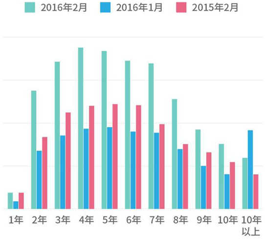 2016年3月全國二手車交易車齡數據