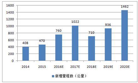 2016-2020中國軌道交通車輛需求測算表(不含有軌電車)