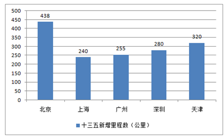 前面分析的二三線城市在建和規劃的線路將成為“十三五”城軌通車的主力,除此之外,一線城市近期也紛紛提出激進的遠期軌交網絡擴建計劃,將為長期城軌市場的景氣度蓄力。一線城市未來十年城軌建設空間依然很大:根據我們對北上廣深天津這幾個一線城市城市軌道交通建設規劃,十三五期間一線城市城軌新增里程數達到1571公里,并且未來規劃都將把城市軌道交通占公共交通比例提高到50%以上。1)北京:根據北京2015年9月底出的2015-2021年北京城市軌道交通第二期建設規劃,2015~2021年新開工建設12個項目,總長度262.9公里。項目總投資為2122.8億元。到2021年形成總長998.5公里的軌道交通網絡。,新增里程數440公里。預測2021年,北京市公共交通占機動化出行量比例為60%,軌道交通占公共交通出行量比例為62%。2)上海:根據2016-2020年新一輪建設規劃,到2020年底上海軌道交通總里程有望超過800公里,新增里程數為240公里,形成500余座車站的龐大軌道交通網絡。同時上海市委書記韓正在2015年8月也提出“十三五”期間,上海要堅定不移堅持公交優先發展戰略,突出完善大容量軌道交通網絡,核心是增能、擴能、增效。3)廣州:2016年3月16日,廣州市人民政府印發《廣州市國民經濟和社會發展第十三個五年規劃綱要(2016—2020)》,到2020年,廣州建成開通城市軌道交通里程超過520公里,形成“環線+放射線”地鐵線路網,新增里程數為261公里。4)深圳:2015年9月,國家發展改革委關于深圳市城市軌道交通第三期建設規劃(2011~2020年)調整方案的批復,預計到2020年,形成11條運營線路、總長434.9公里的軌道交通網絡,新增里程數260公里。5)天津:2015年9月,天津城市軌道交通建設規劃獲批復,到2020年,本市將形成14條運營線路、總長513公里的軌道交通網絡,十三五期間新增里程數370公里。