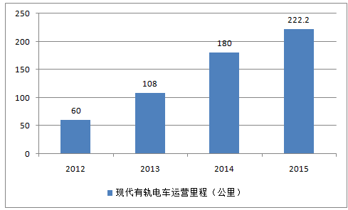 4、2015年通車僅222公里,有軌電車基數還很低:從已有線路運營、建設及規劃情況來看,國內有軌電車線路普遍集中在大城市郊區、衛星城、工業區等區域,這些地區客流量適中,特別適用于有軌電車線路發揮運力。同時國內還存在數目眾多的中小城市,改善交通需求龐大。隨著城市化的快速發展,我國還有相當數量的中小城市正在面臨或將面臨人口爆發,需要建設中運量公共交通模式來滿足其交通需求,中小城市發展有軌電車的門坎極低,有著廣闊的發展空間。根據城市軌道交通網對我國現代有軌電車的統計,2012年我國現代有軌電車運營里程為60公里,到2015年達到222公里,復合增速達到55%。