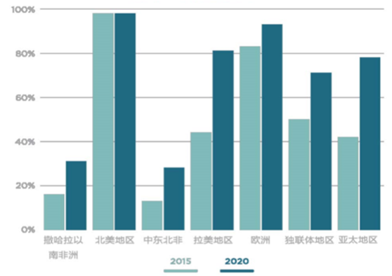 預計 2020 年 4G 運營商的數量將增加近 50%。4G 網絡將覆蓋全球 63%的人口,尤其是在發展中地區將覆蓋 60%的人群。