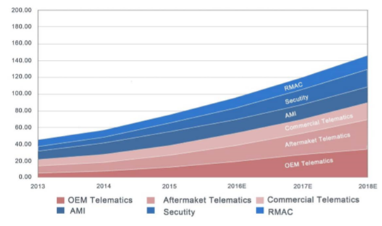 從 3G 網絡的成熟到 4G 網絡的普及,2G 業務的規模不斷下降,全球運營商開始逐步關閉 2G 業務,推動通信模塊向 4G 發展。從 ABI Research 的數據上來看,4G 通信模塊的應用范圍將逐步延伸,車載、智能電網、金融支付、安防監控、遠程監測與控制將成為 4G 通信模塊出貨量較大的五個領域。