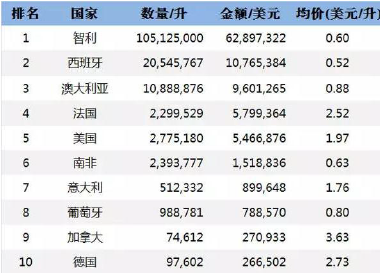 2015 年十大進口瓶裝酒來源地