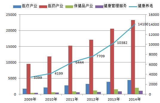 我國健康服務產業鏈主要有五大基本產業群:一是以醫療服務機構為主體的醫療產業;二是以藥品、醫療器械、 醫療耗材產銷為主體的醫藥產業;三是以保健食品、健康產品產銷為主體的保健品產業;四是以健康檢測評估、咨詢服務、調理康復和保障促進等為主體的健康管理服務產業;五是健康養老產業。