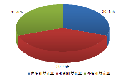 從融資租賃規模看,已形成三分天下的市場格局,其中金融租賃公司市場份額領先,市場占比39.45%;外商和內資租賃公司的租賃市場份額分別為30.40%、30.15%。