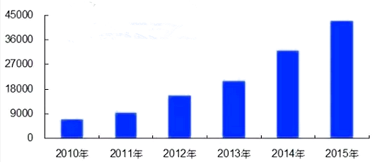 2010-2015年中國融資租賃行業交易規模增長趨勢