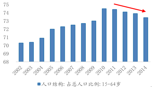 我國(guó)15-64 歲勞動(dòng)人口占比開(kāi)始下降(% )