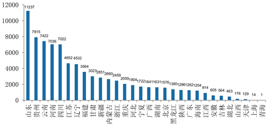 從投資金額來(lái)看,山東、貴州、云南、河南、四川排名前 5,總計(jì)約 4.06 萬(wàn)億元,占總投資額的 48.9%。
