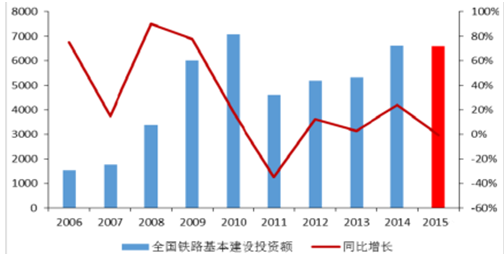 全國(guó)鐵路基本建設(shè)投資額(單位:億元)