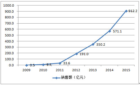 2009-2015年淘寶天貓雙十一單日銷售額